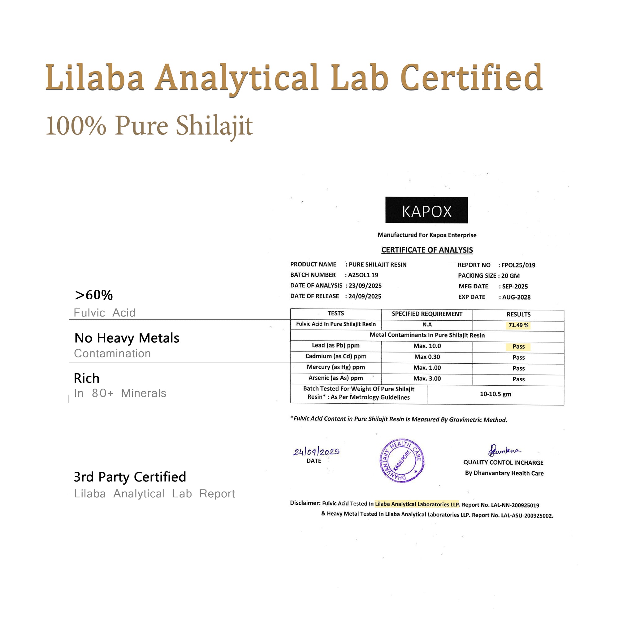 Lab-Tested for Purity & SafetyEach batch screened for heavy metals and quality parameters with third-party reports. -